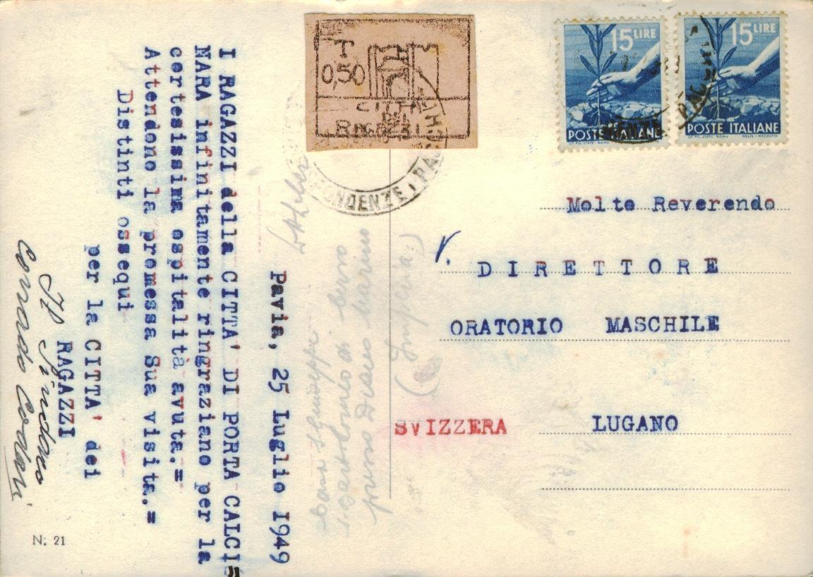 ho trovato pochi giorni fa questa cartolina del 1949, con anche un francobollo (suppongo raro), passato per posta, di una città dei ragazzi di cui no so niente.