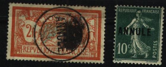 Gianni S. manda alcune immagini , di esse mostro un bollo "annulè" con prova di timbro tondo (non molto riuscito...)