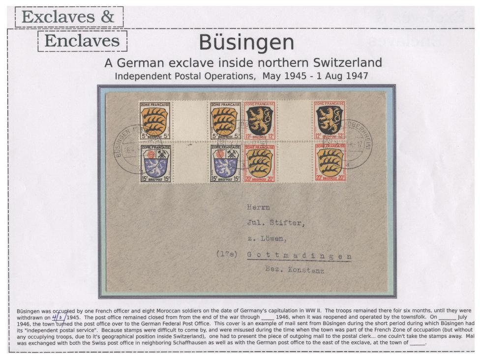 To send a letter to Büsingen, one can send it using either a Swiss postal code